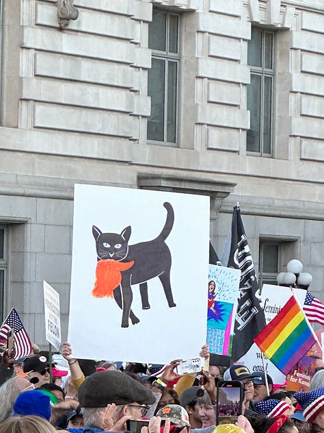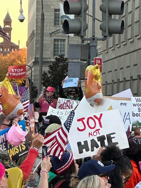 If I’d headed east and then south, I would’ve missed it. I could have spent a peaceful afternoon looking at art and learning why nineteenth century French painting is problematic. Instead, I walked straight into Freedom Plaza, where thousands had gathered to have very strong feelings.